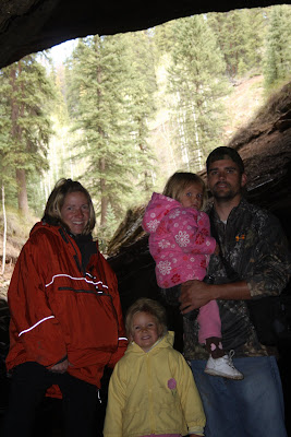 Dan told us about this cave that is 5 miles long, so when we had about 4 hours of good 4 wheeling weather, we went exploring and hiked into the cave. Our flashlights were not the best but we went into it about 1/2 a mile, there were these awesome ice blocks, and the day before this cave was full of water? Kae wanted to keep going, but our little Kels was nervous, so we headed back.